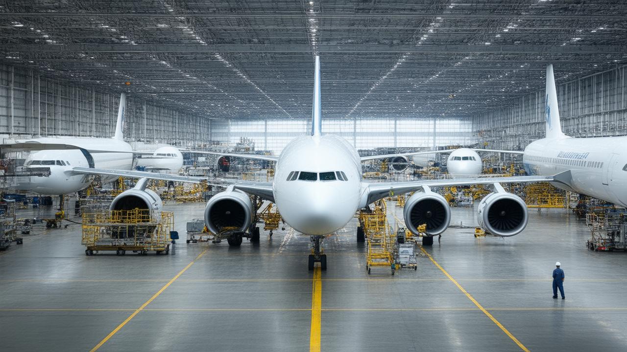 On the polished concrete floor, painted paths and safety lines intersect like a city’s traffic plan. Electric tugs whisper by, towing carts full of parts that might soon become part of a wing, a cockpit, a cabin ceiling above a sleeping passenger crossing an ocean in the dark. Walk far enough and you’ll pass welding arcs flickering like blue fires, carefully controlled, carefully measured. Look up, and the roof seems to float on a forest of steel columns, cranes moving like deliberate animals in the canopy.