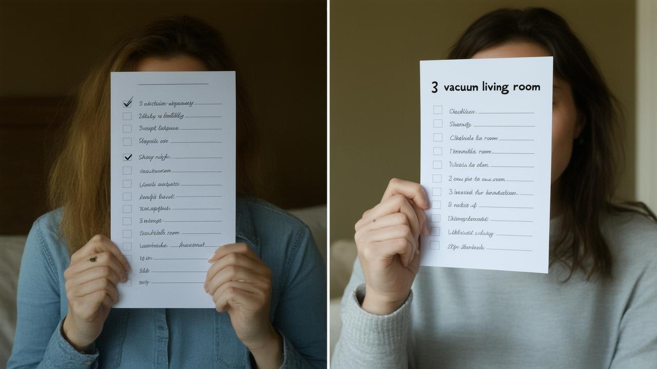 As I read through the list, my breathing got shallow. I felt the familiar rush: a cocktail of guilt, pressure, and that jittery feeling that my body thinks is “motivation” but is really just panic dressed in activewear. I had been giving myself cleaning goals that would challenge a professional crew, and then blaming myself when I inevitably “failed” to complete them.