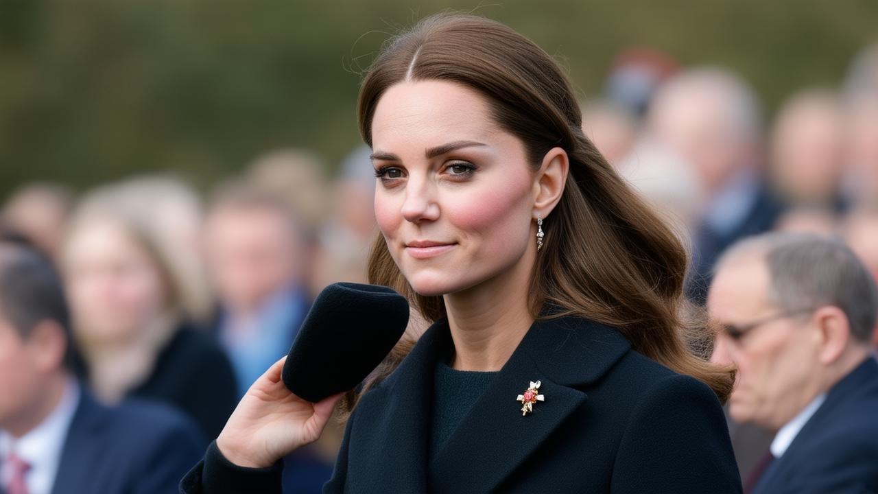 And there, above it all, stood the Princess of Wales. Her silhouette was instantly recognizable: a clean, structured black coat, a hat with precise geometry, hair swept back in that unfailingly polished style. But look a little closer, and something felt different—so small that a casual observer might have missed it, so intimate that those who noticed couldn’t stop talking about it.
