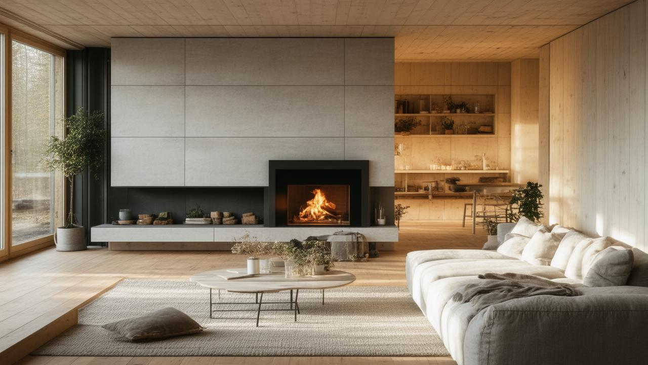 Later, in the living room, you find yourself sitting on the floor more often than the couch. Children lie belly-down on the boards drawing pictures; dogs sprawl like melted chocolate on the tiles. A basket of wool socks sits forgotten in the corner. The heat doesn’t slap you in the face; it wraps around you quietly, as if it’s always been part of the room.