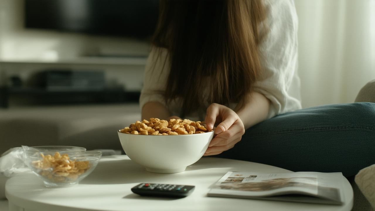 In the evening, the pattern often repeats. The sun drains out of the sky. The room darkens. Another episode begins. Your hands, unoccupied, drift toward a bowl or a bag. The show plays, but the deeper story is in your body: a quiet unease at stillness, a discomfort with simply being there, present, without a distraction. Food becomes a way to soften that discomfort, to muffle the quiet.