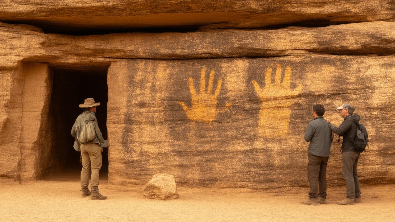 As we climb, the ground changes underfoot: loose scree, flakes of stone where the cliff face has slowly exfoliated, century by century. In the overhangs and shallow caves, the air cools markedly, carrying that mineral smell of shaded rock. This is where the art begins to appear, subtle at first—faint smears of red, hand stencils like pale ghosts on the wall. Then, as our eyes adjust, more and more emerges from the rock, until the entire surface seems alive with figures and patterns, stories and warnings, maps of country written in ochre instead of ink.